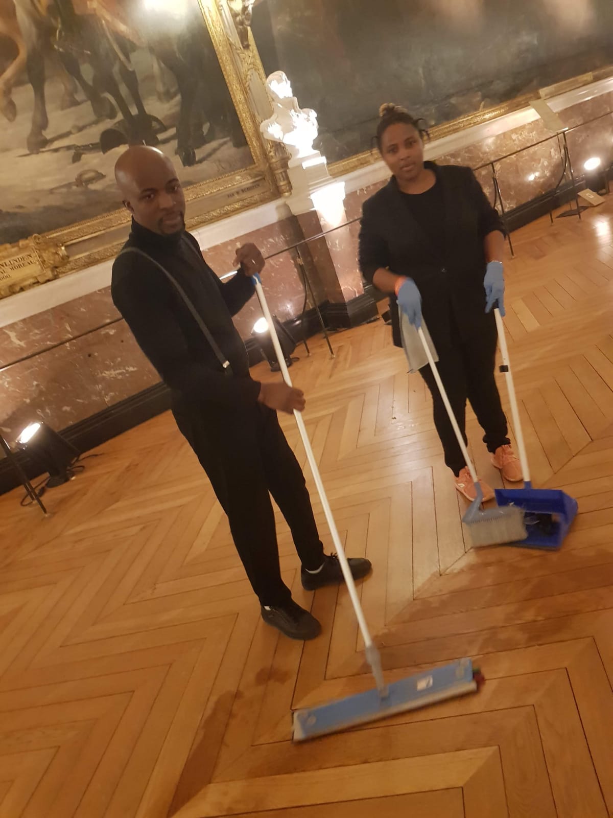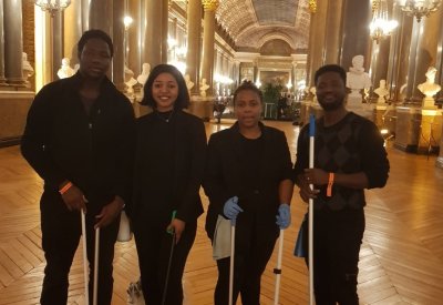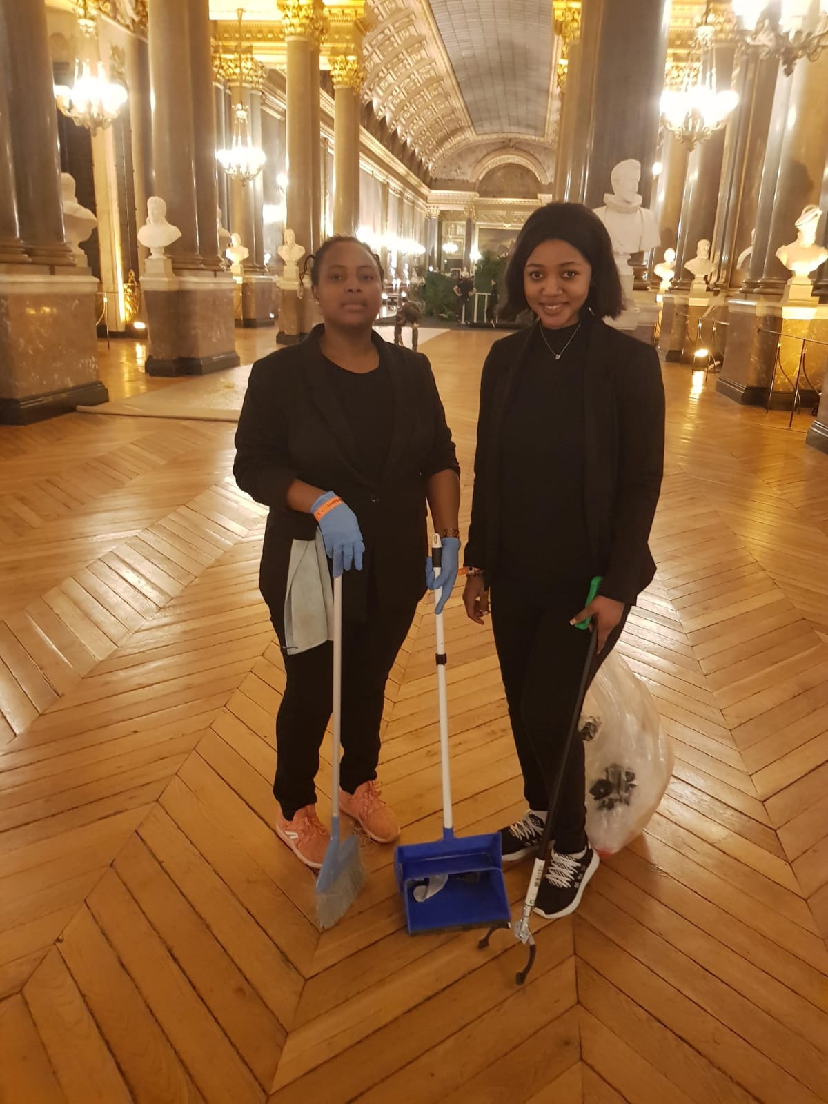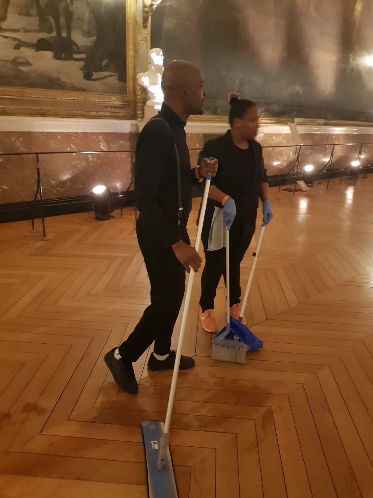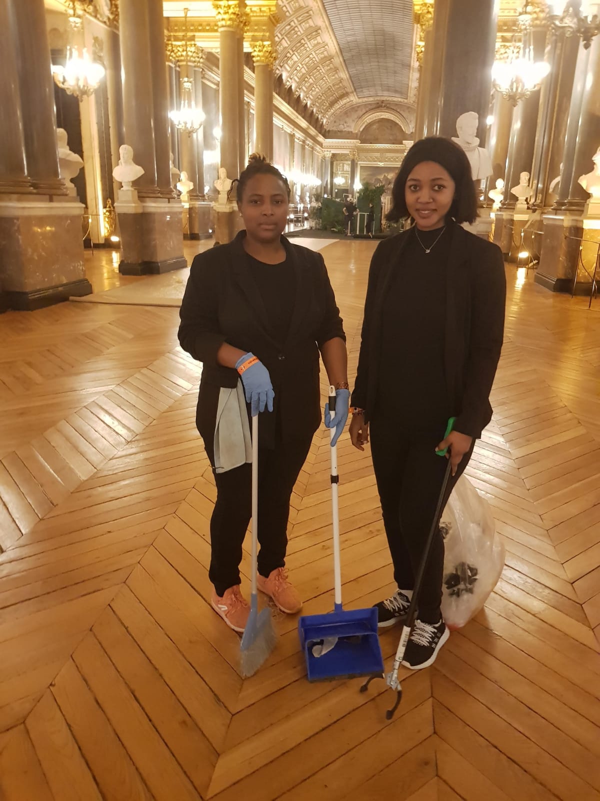 Nettoyage et ramassage lors du défilé Kenzo de la fashion week à Paris , nettoyage avant le defilé, pendant et après